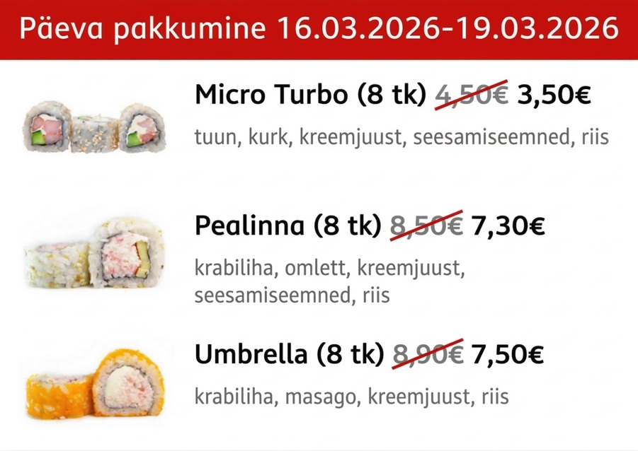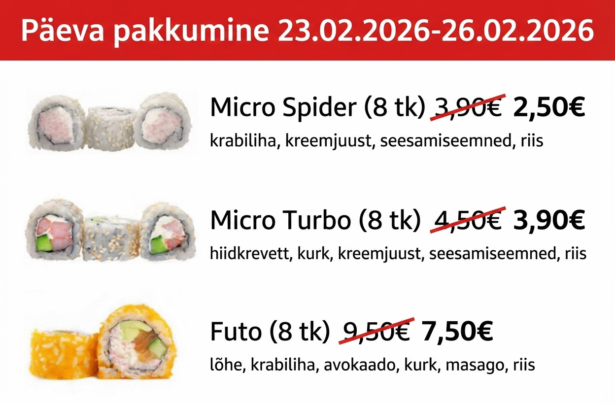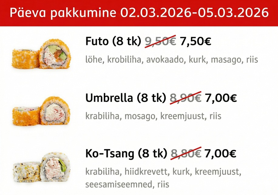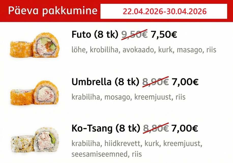 Kui Teile on allergiaid või erisoove, võtage palun restoraniga ühendust. Japosha sushi pakub koostisosade kohta infot, kui küsida